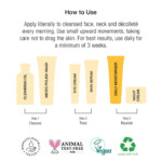 Masazhoni në fytyrë, qafë dhe dekolte të pastruar çdo mëngjes. Për rezultatet më të mira, përdorni çdo ditë për të paktën 3 javë.